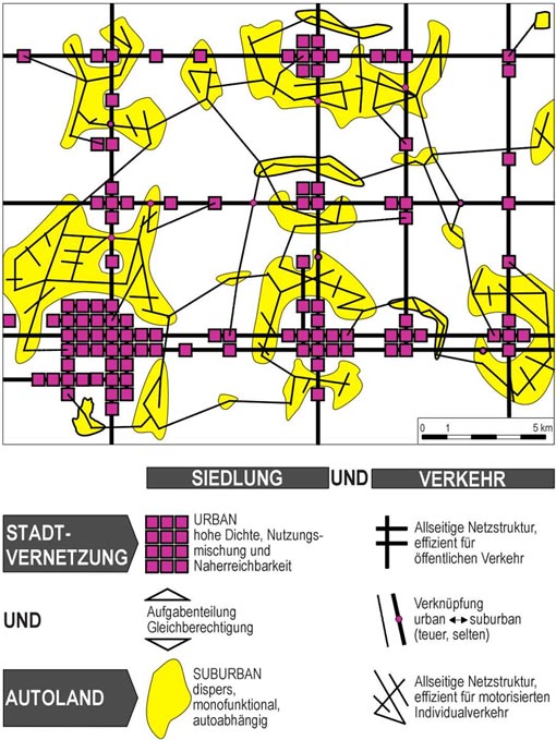 Bild 6. Wichtig für den ÖPNV der Zukunft: lange Linien, allseitige Vernetzung und Differenzierung in Komfort-ÖV ("Städteketten") und Flächen-ÖV ("Autoland")